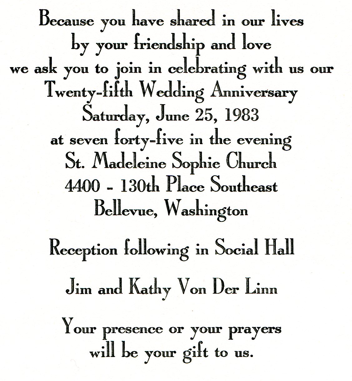 Jim and Kathy 25th Wedding Anniversary