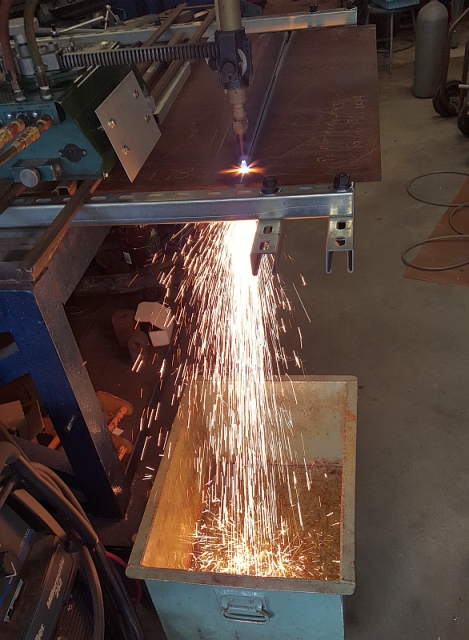 I cut plate with a track burner. I ran a track burner for quite a few shifts back in the '70s, and find them easy and intuitive to run, as well as a lot of fun. They cut a beautiful straight line, too. Very satisfying. This track burner is an old Victor model. I think Victor bought the design from Heath Engineering. Anyway, it's a clever design and I will probably be writing a blog just about that track burner soon.