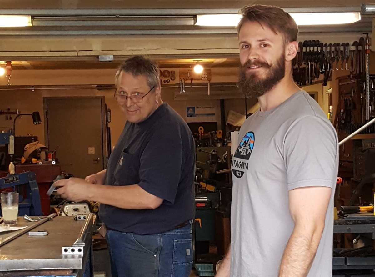 Sadly, I do not have photographs of the flattening, bending or punching steps. Suffice it to say we cut each part so that the holes were as close to the ideal length apart as we could.